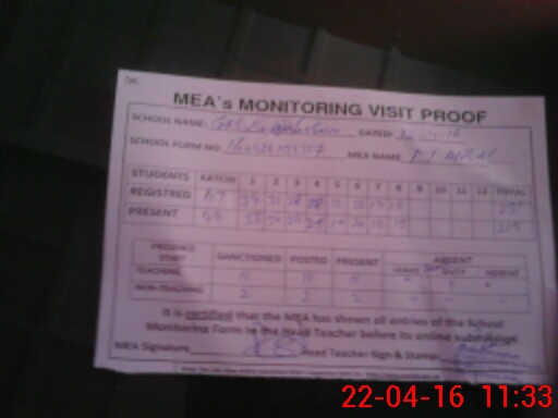 | Attendance Register | Head Teacher | MEA with School | Visit Proof |