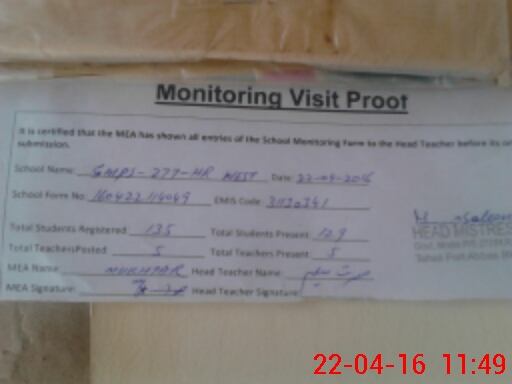| EMIS Code: 31130341 | Name of School: GMPS CHAK NO 277 HR W | |||