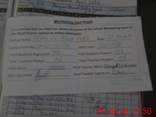 | Attendance Register | Head Teacher | MEA with School | Visit Proof |