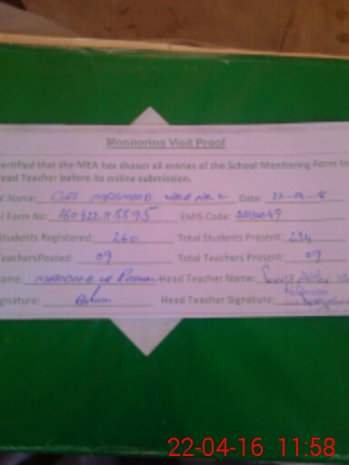 | Certified that this School was Inspected by the Undersigned MEA/DMO Today and the Information Stated Above is as Per Record. | |||||