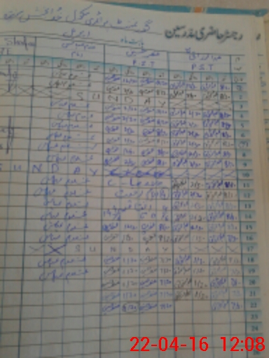 | CNIC | Full Name | Designation | R/C | Absence During Last Calender Month |