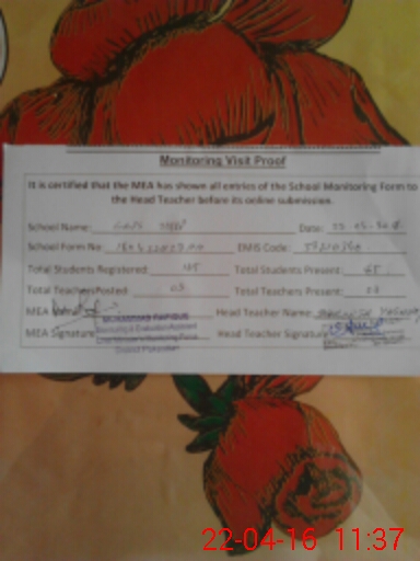 | Attendance Register | Head Teacher | MEA with School | Visit Proof |