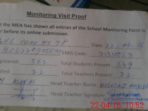 | EMIS Code: 31310053 | Name of School: GHS CHAK NO 7/P KHANPUR | |||