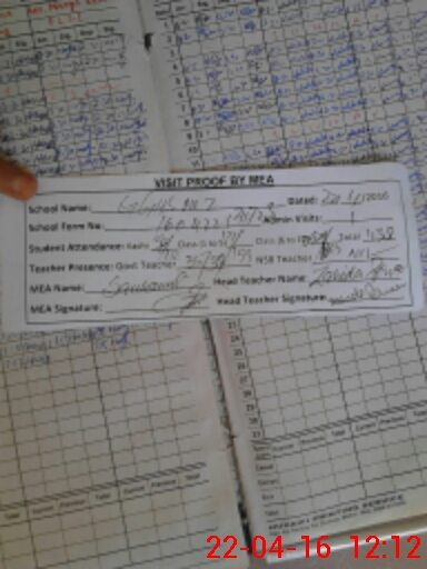 | Attendance Register | Head Teacher | MEA with School | Visit Proof |