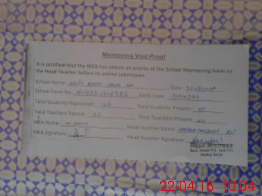 | Certified that this School was Inspected by the Undersigned MEA/DMO Today and the Information Stated Above is as Per Record. | |||||