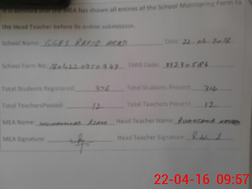 | Certified that this School was Inspected by the Undersigned MEA/DMO Today and the Information Stated Above is as Per Record. | |||||