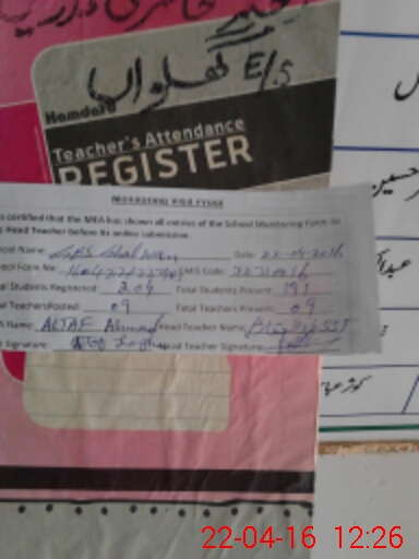 | Attendance Register | Head Teacher | MEA with School | Visit Proof |