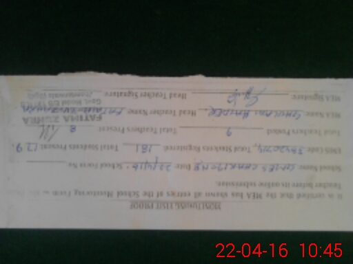 | Monitoring Date: 22-04-2016 | Start Time: 22-04-2016 09:59 AM | End Time: 22-04-2016 10:45 AM | Name of MEA: GH**** HA**** | |