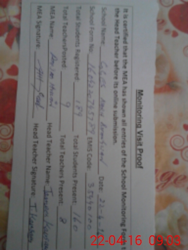 | Certified that this School was Inspected by the Undersigned MEA/DMO Today and the Information Stated Above is as Per Record. | |||||