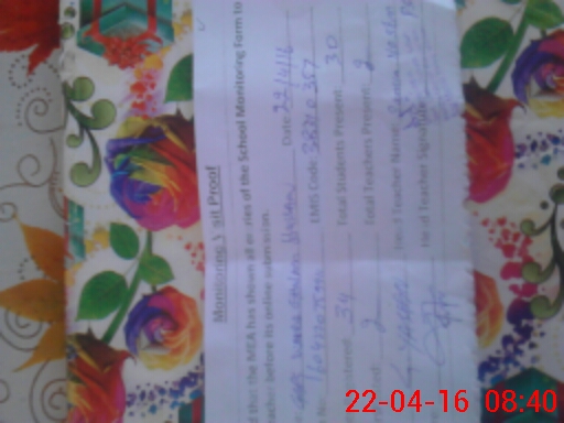 | Monitoring Date: 22-04-2016 | Start Time: 22-04-2016 07:59 AM | End Time: 22-04-2016 08:40 AM | Name of MEA: Gh**** Ya**** (R**** | |