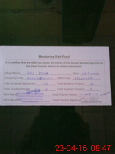 | Attendance Register | Head Teacher | MEA with School | Visit Proof |