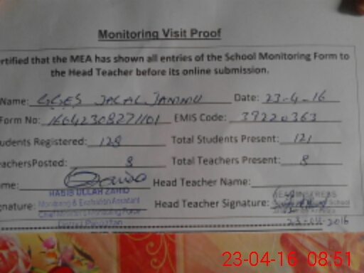 | EMIS Code: 39220363 | Name of School: GGES JALAL JAMMOON POST OFFICE MARI HAZARA | |||