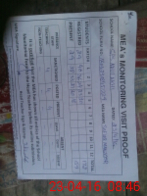 | Attendance Register | Head Teacher | MEA with School | Visit Proof |
