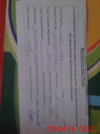 | Certified that this School was Inspected by the Undersigned MEA/DMO Today and the Information Stated Above is as Per Record. | |||||