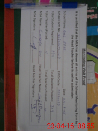 | Certified that this School was Inspected by the Undersigned MEA/DMO Today and the Information Stated Above is as Per Record. | |||||