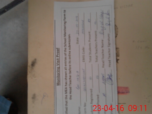 | Attendance Register | Head Teacher | MEA with School | Visit Proof |