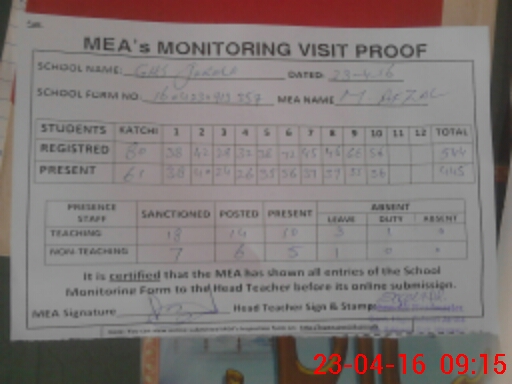 | Certified that this School was Inspected by the Undersigned MEA/DMO Today and the Information Stated Above is as Per Record. | |||||