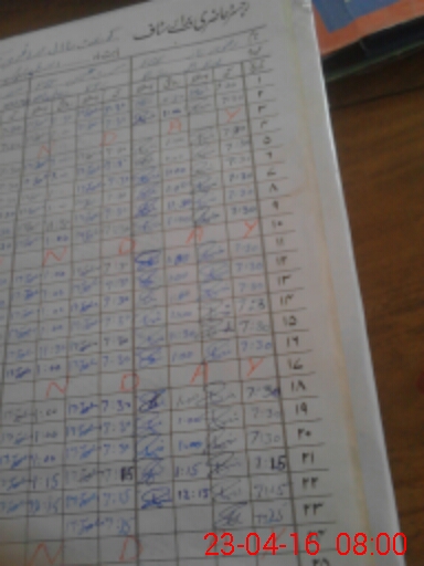 | CNIC | Full Name | Designation | R/C | Absence During Last Calender Month |