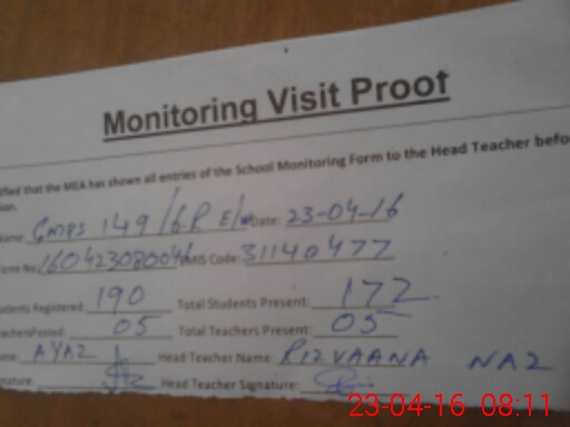 | Attendance Register | Head Teacher | MEA with School | Visit Proof |