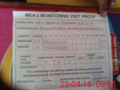 | Attendance Register | Head Teacher | MEA with School | Visit Proof |