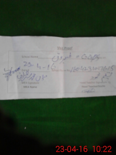 | School Visited by School Health & Nutrition Supervisor (No. of Visits) | 1 | Name1: | Masood Rehman | Name2: | |