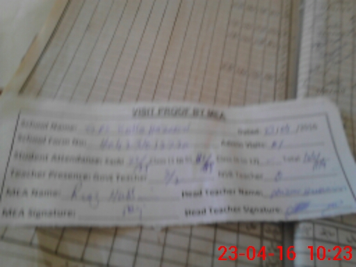 | Attendance Register | Head Teacher | MEA with School | Visit Proof |