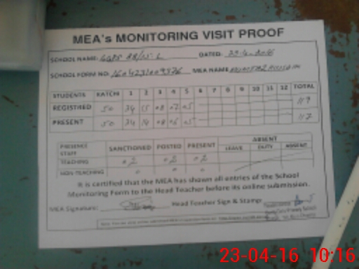 | Attendance Register | Head Teacher | MEA with School | Visit Proof |