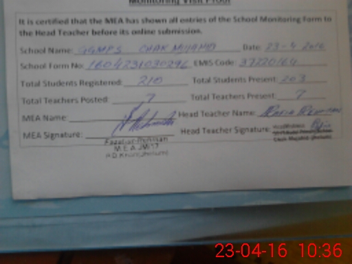 | Certified that this School was Inspected by the Undersigned MEA/DMO Today and the Information Stated Above is as Per Record. | |||||