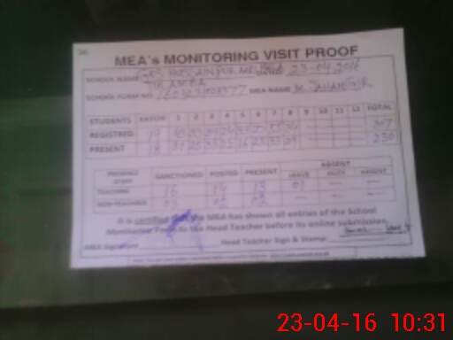 | Certified that this School was Inspected by the Undersigned MEA/DMO Today and the Information Stated Above is as Per Record. | |||||