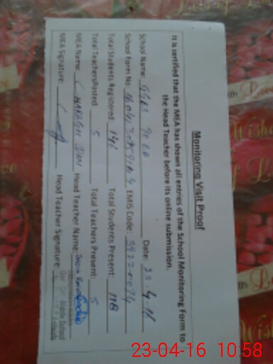 | Certified that this School was Inspected by the Undersigned MEA/DMO Today and the Information Stated Above is as Per Record. | |||||