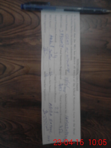 | Monitoring Date: 23-04-2016 | Start Time: 23-04-2016 08:20 AM | End Time: 23-04-2016 10:06 AM | Name of MEA: AB**** SA**** (R**** | |