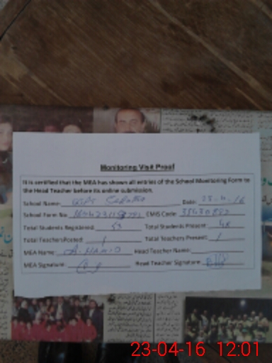 | Certified that this School was Inspected by the Undersigned MEA/DMO Today and the Information Stated Above is as Per Record. | |||||