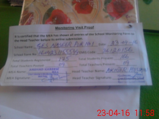 | EMIS Code: 36120156 | Name of School: GES NASEER PUR NO.1 SHUJABAD | |||