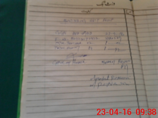 | Monitoring Date: 23-04-2016 | Start Time: 23-04-2016 09:08 AM | End Time: 23-04-2016 09:39 AM | Name of MEA: Gh**** Ha**** | |