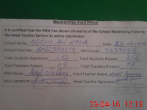 | EMIS Code: 32330418 | Name of School: GGCMS ALI WALA | |||