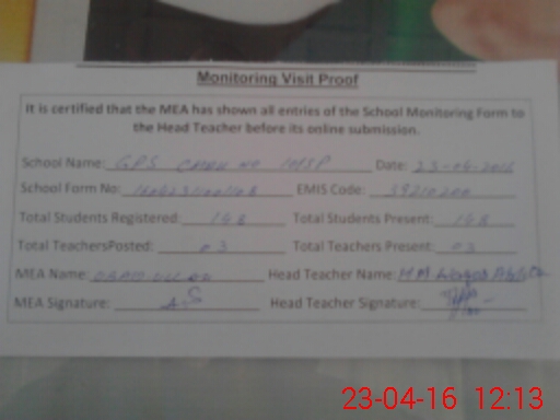 | Certified that this School was Inspected by the Undersigned MEA/DMO Today and the Information Stated Above is as Per Record. | |||||
