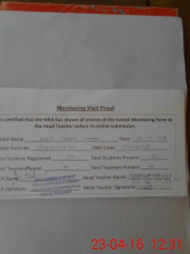 | Attendance Register | Head Teacher | MEA with School | Visit Proof |