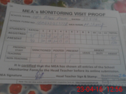 | Certified that this School was Inspected by the Undersigned MEA/DMO Today and the Information Stated Above is as Per Record. | |||||