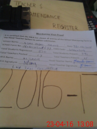 | Attendance Register | Head Teacher | MEA with School | Visit Proof |