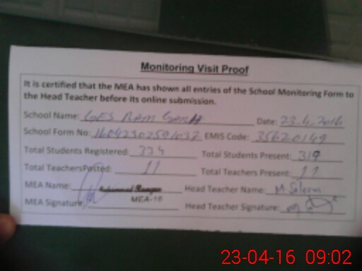 | Certified that this School was Inspected by the Undersigned MEA/DMO Today and the Information Stated Above is as Per Record. | |||||