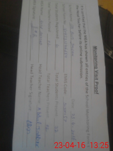 | Certified that this School was Inspected by the Undersigned MEA/DMO Today and the Information Stated Above is as Per Record. | |||||