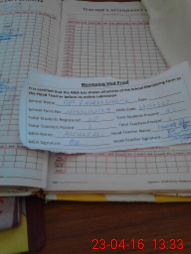 | Attendance Register | Head Teacher | MEA with School | Visit Proof |