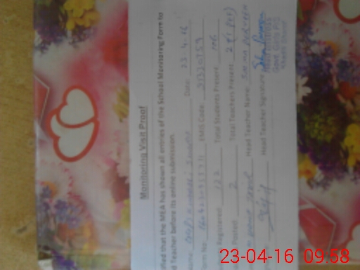 | Attendance Register | Head Teacher | MEA with School | Visit Proof |