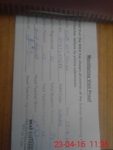 | Certified that this School was Inspected by the Undersigned MEA/DMO Today and the Information Stated Above is as Per Record. | |||||