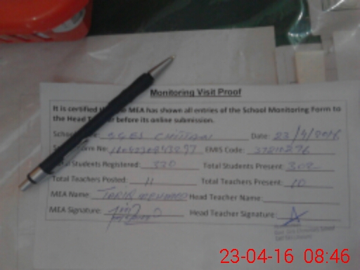 | Attendance Register | Head Teacher | MEA with School | Visit Proof |