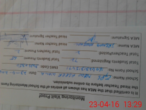 | Certified that this School was Inspected by the Undersigned MEA/DMO Today and the Information Stated Above is as Per Record. | |||||