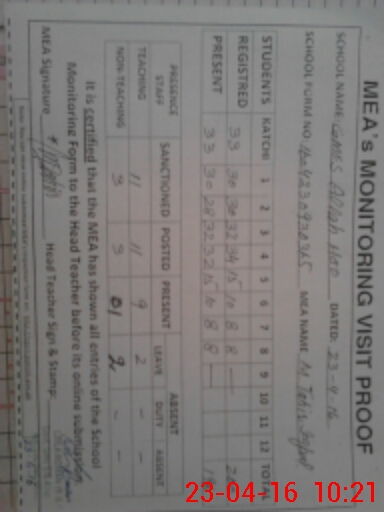 | Monitoring Date: 23-04-2016 | Start Time: 23-04-2016 09:23 AM | End Time: 23-04-2016 10:25 AM | Name of MEA: M.Ta**** Iq**** (S**** | |