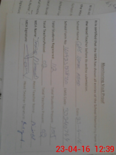 | Attendance Register | Head Teacher | MEA with School | Visit Proof |