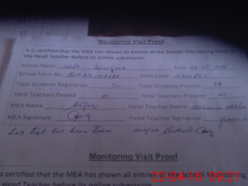 | Attendance Register | Head Teacher | MEA with School | Visit Proof |