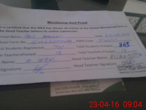 | Certified that this School was Inspected by the Undersigned MEA/DMO Today and the Information Stated Above is as Per Record. | |||||